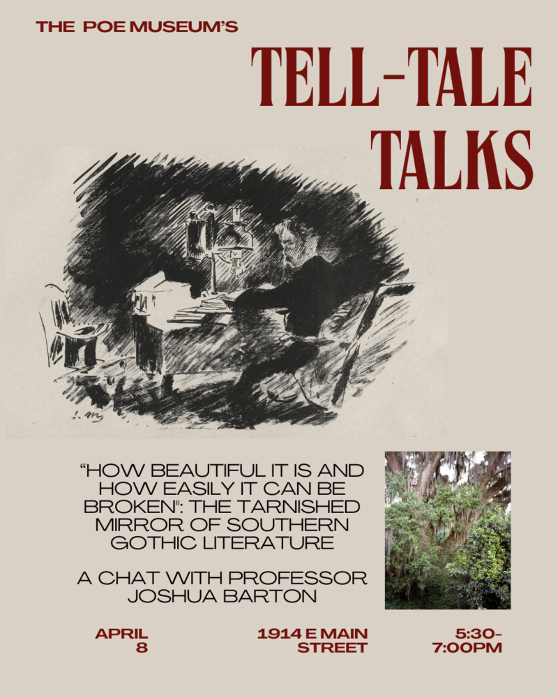 Check back in late March to reserve tickets. Join us at The Poe Museum on Wednesday, April 8th for a Tell-Tale Talk featuring Professor Joshua Barton on "How beautiful it […]