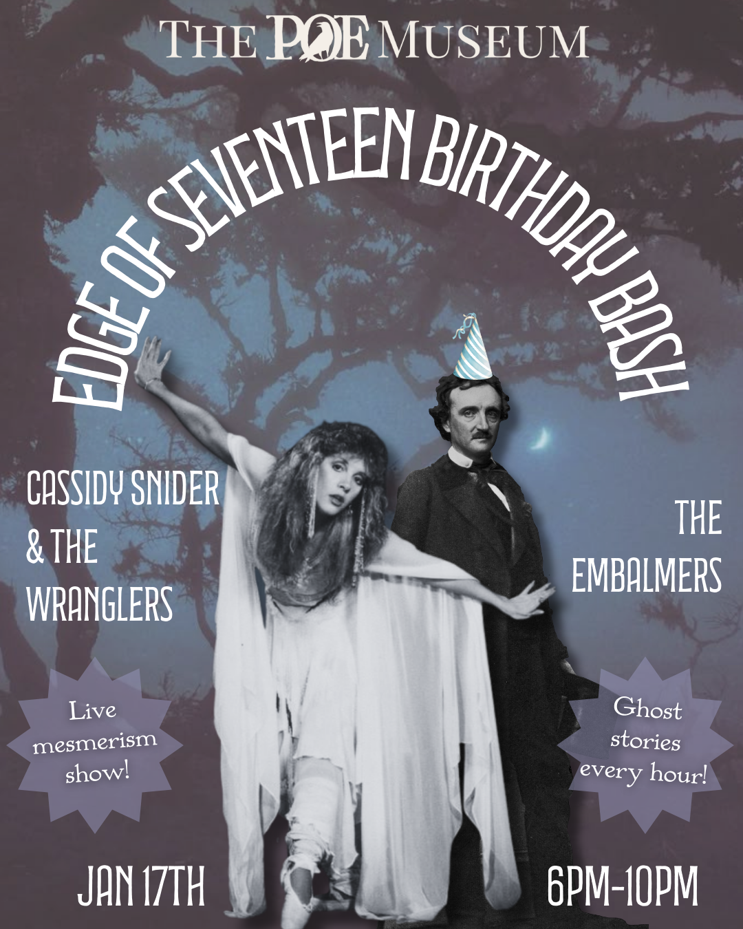 On Saturday, January 17th, celebrate the 217th birthday of Edgar Allan Poe with an EDGE OF SEVENTEEN themed Birthday Bash at the Poe Museum. Admission tickets for this event are […]