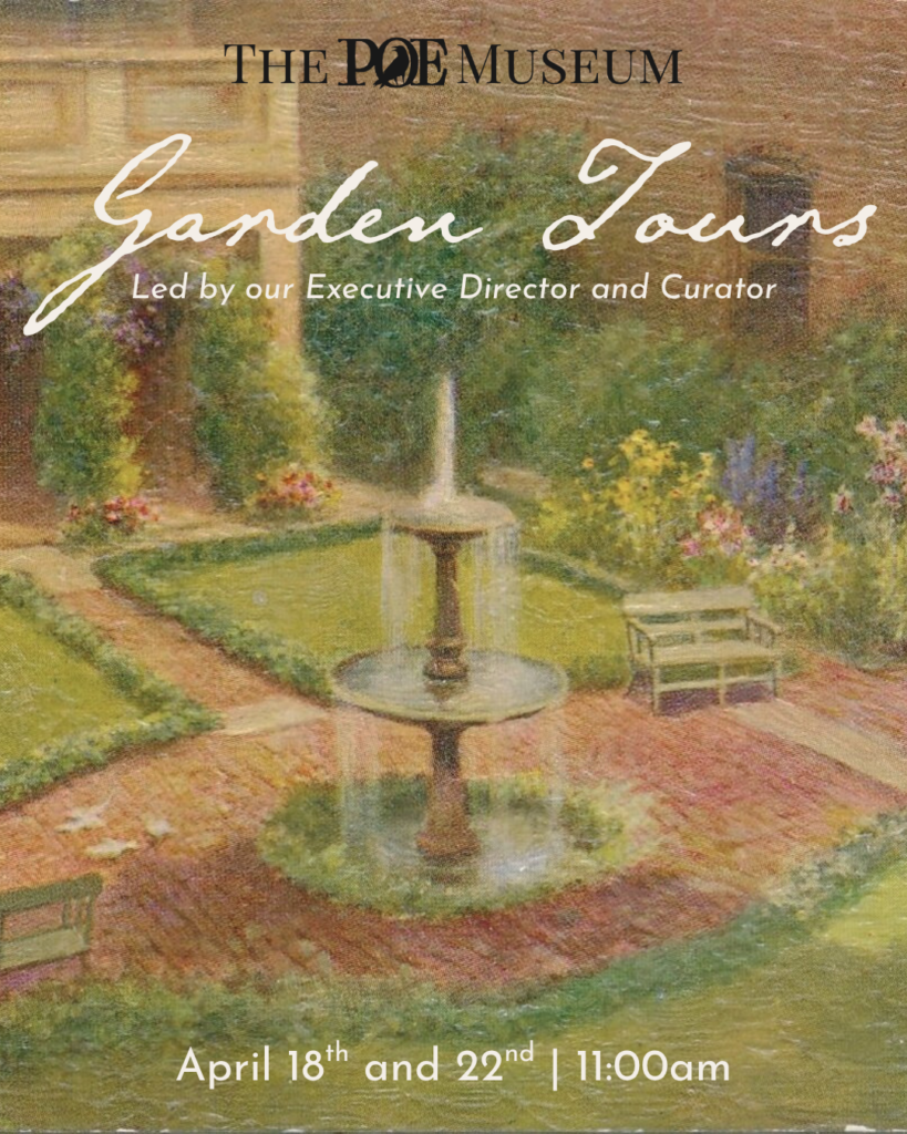 Join us for a 30-minute guided tour of The Poe Museum’s historic Enchanted Garden led by our Executive Director and Curator.
