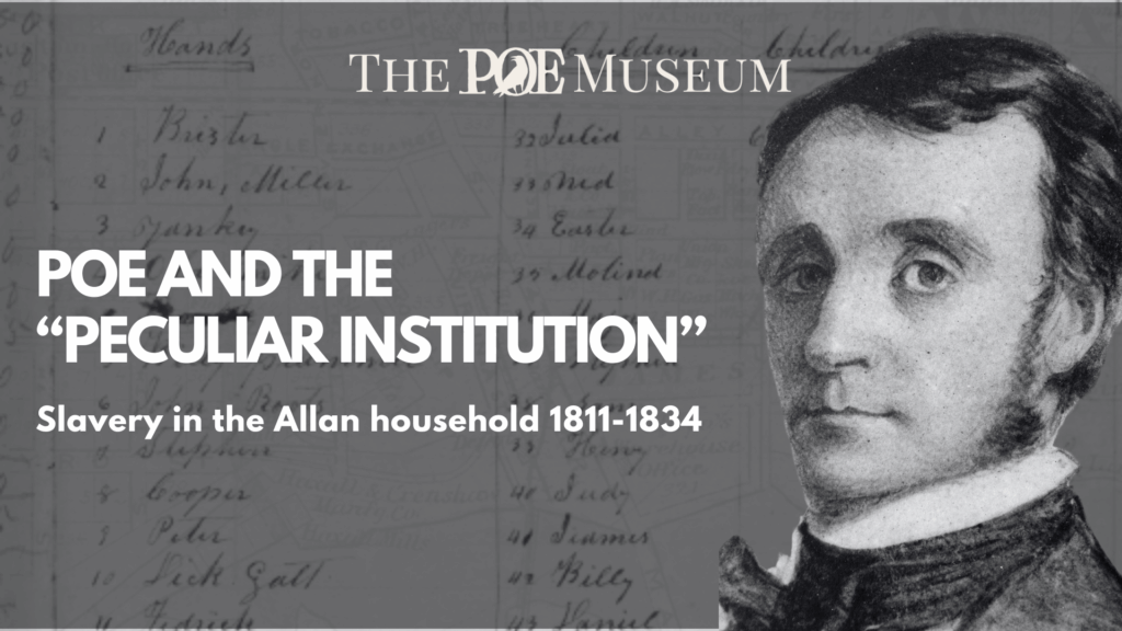 Join the Poe Museum for our “Know Your Poe” series, an evening program hosted quarterly that explores Edgar Allan Poe’s life through various thematic lenses. This series offers Poe-enthusiasts across the world to connect with the Poe Museum, literary scholars, and each other in hopes of gaining a deeper understanding of one of America’s most influential literary figures.