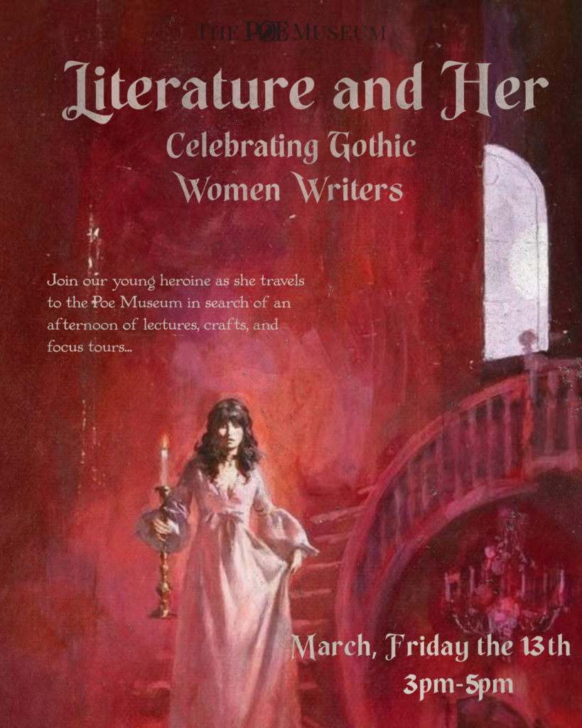 At 4:00pm, our Education Coordinator will be leading a special focus tour on the lives of the women who surrounded Poe. Registration for this tour is required. Capacity of 20 attendees.